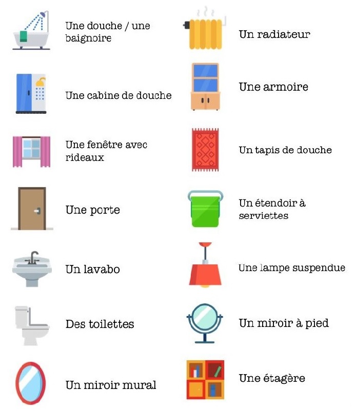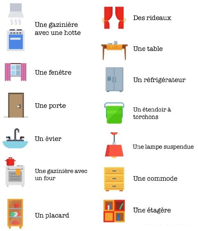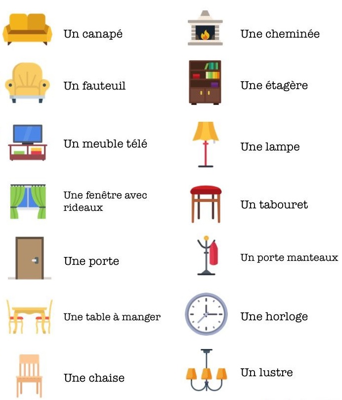 Voici une liste de vocabulaire, de tous les meubles de votre maison :